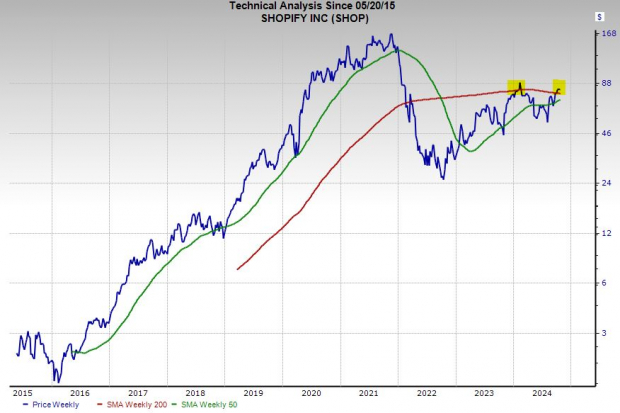 SHOP is expected to boost its adjusted earnings by 51% in 2024 to $1.12 a share and then boost its bottom line by 19% next year. Shopify’s upbeat earnings revisions help it land a Zacks Rank #1 (Strong Buy).