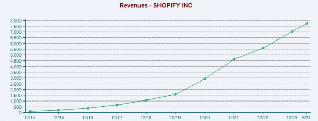 SHOP’s 2.4 PEG ratio, with factors in its long-term earnings growth outlook, marks an 84% discount to its recent highs and not too large of a premium compared to the Zacks Tech sector (1.6).