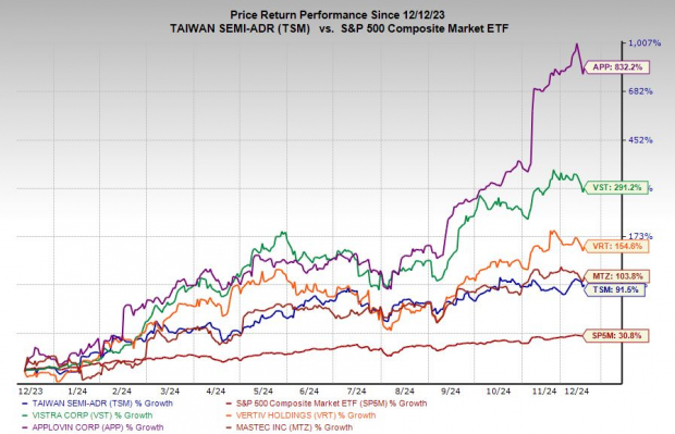 The five market-crushing stocks we explore today earn Zacks Rank #1 (Strong Buys) and appear worth buying in 2025 and holding for long-term upside: TSM, VST, VRT, APP, and MTZ.