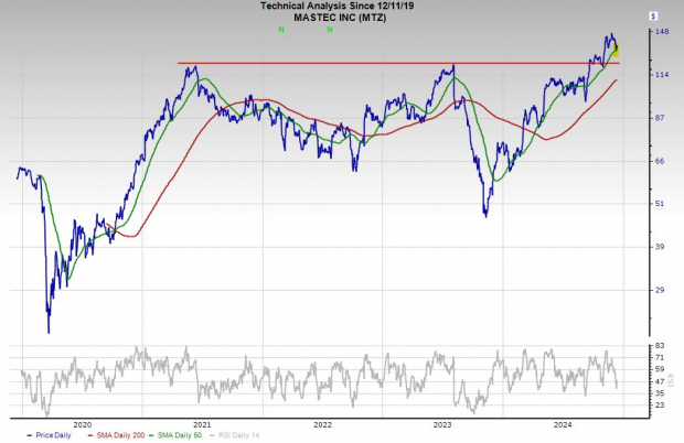 MasTec, Inc. (MTZ) more than doubled the Zacks Construction sector over the past 15 years, soaring 1,000%. Despite this run, MTZ has lagged slightly behind its sector in the last five years. That recent underperformance could be due to change after MTZ broke out into a new trading range and all-time highs in November after soaring 81% YTD.
