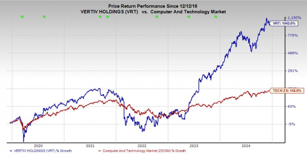 Vertiv stock has ripped 165% higher in 2024 and over 1,000% in the past five years, crushing the Zacks Tech sector during both stretches.