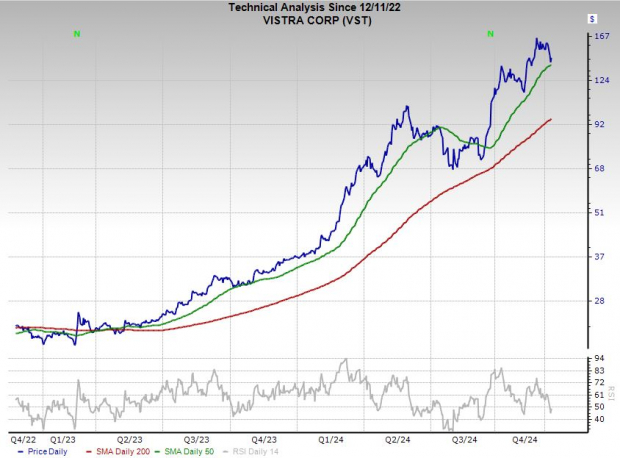 Vistra trades 15% below its average Zacks price target and its Price/Earnings-to-Growth (PEG) Ratio offers 30% value compared to the Zacks Utilities sector. The stock recently found support at its 50-day moving average.