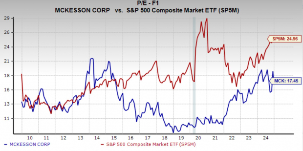 McKesson also has a Zacks Rank #1 (Strong Buy) rating, with analysts nearly all raising earnings estimates in the last two months. MCK also has a reasonable valuation, currently trading at 17.5x forward earnings. This is above its 15-year median of 13.3x but is well below the market average. And you can see that during periods of uncertainty, the earnings multiple has occasionally risen above the market average, which may be the case if we see a rise in volatility next year.