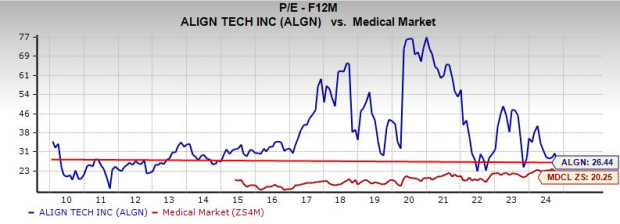 Align’s earnings outlook has remained flat over the last several months helping ALGN earn a Zacks Rank #3 (Hold). Align is projected to expand its sales by 4% in 2024 and 6% in FY25 to $4.25 billion. ALGN is projected to grow its adjusted EPS by 8% in 2024 and 9% in 2025.