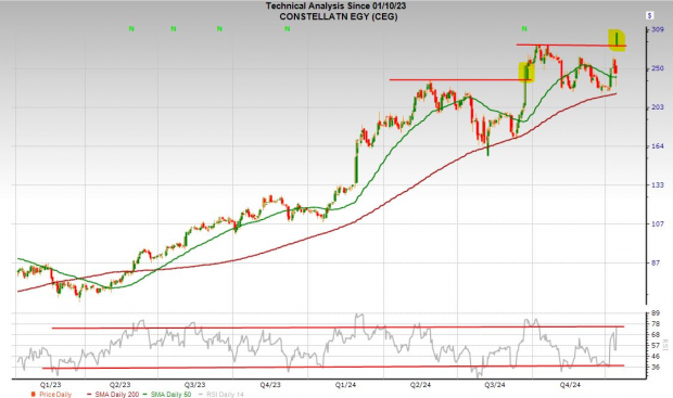 Constellation is a Zacks Rank #2 (Buy). CEG has outclimbed plenty of big tech AI stocks over the past several years including Nvidia, and it looks ready to breakout again to start 2025.
