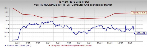 VRT’s impressive long-term earnings growth outlook helps the stock trade at a 55% discount to Tech, with a 0.8 PEG ratio.