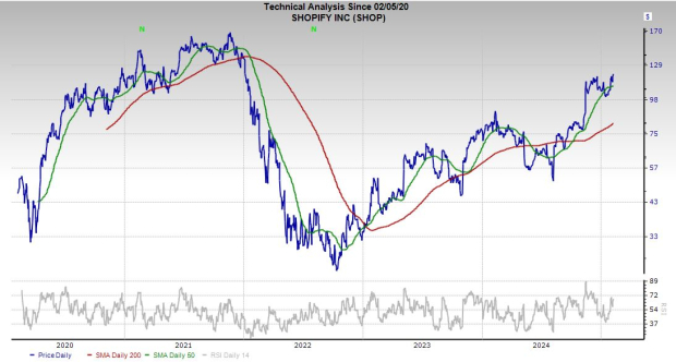 More importantly, SHOP is expected to boost its adjusted earnings by 70% in FY24 and another 19% in FY25 to reach $1.51 per share vs. $0.74 in 2023.