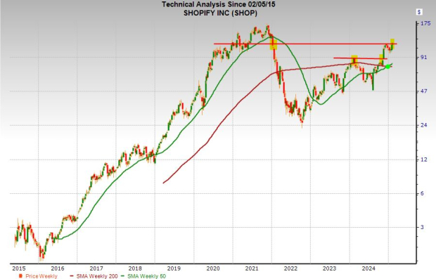 That said, SHOP’s 2.4 PEG ratio, with factors in its long-term earnings growth outlook, marks a roughly 90% discount to its recent highs and a much smaller premium compared to the Zacks Tech sector’s 1.7.