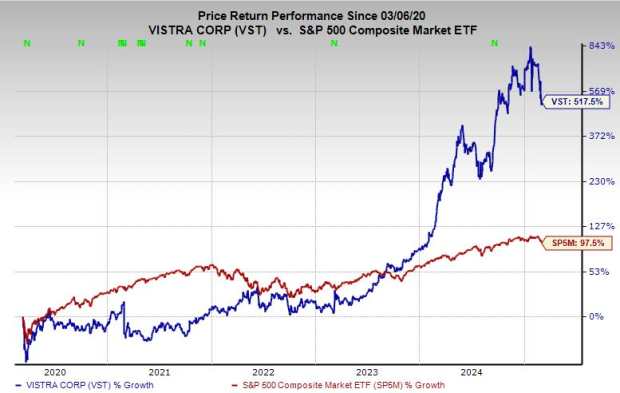 VST has surged 450% over the past three years. Vistra’s massive run included a market-crushing 2024 that saw it outpace Nvidia (NVDA) and nearly every other large-cap AI and nuclear stock.