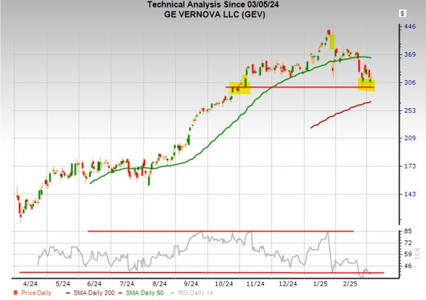 GEV’s 30% drop since late January has erased nearly all of its post-Trump election gains, and the stock is now trying to hold its ground at this level.