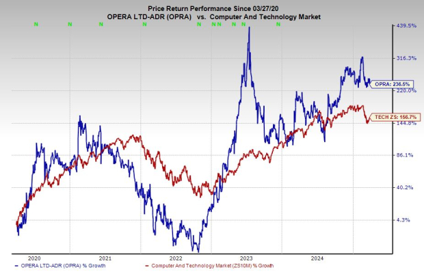 Opera is projected to grow its revenue by 18% in 2025 and 16% in 2026, helping boost its adjusted earnings by 39% and 29%, respectively.