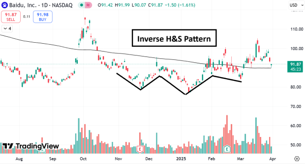 BIDU recently broke out of a bullish inverse head and shoulders pattern. Meanwhile, shares have recaptured the 200-day moving average, signaling a long-term trend change.