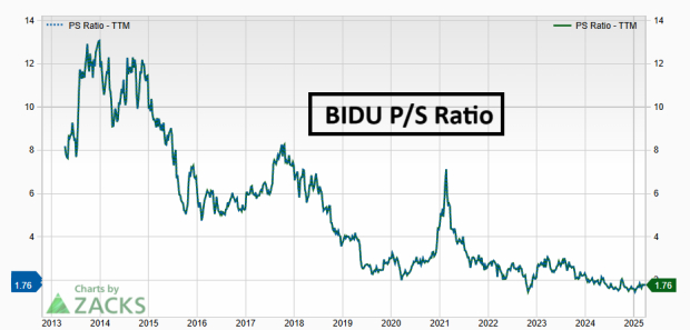 From a price-to-sales perspective, Baidu’s valuation is nearly the lowest it has been since inception.