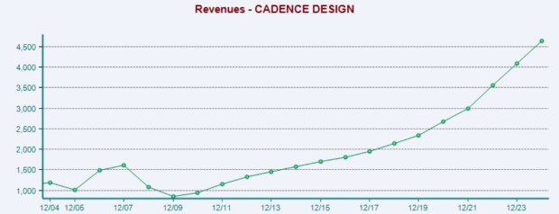 Cadence is projected to grow its revenue by 12% in 2025 and 2026 to reach $5.78 billion, extending its streak of double-digit YoY sales expansion to seven. Meanwhile, it is projected to boost its adjusted earnings by 13% in FY25 and 14% in FY26, following 18% average growth in the past two years.