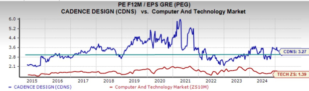 On the valuation front, Wall Street has been willing to pay a premium for Cadence’s consistent growth outlook for a long time. CDNS trades at its 10-year median and at a nearly 40% discount to its highs at 45.9X forward earnings and 45% below its highs when it comes to its PEG ratio—which factors in its long-term earnings growth outlook.