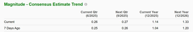 Exceeding Q1 expectations, Upwork provided favorable guidance, which could lead to a continued uptick in FY25 and FY26 EPS revisions, which have popped 9% and 10% in the last week, respectively. Upwork’s annual earnings are now expected to be up 9% in FY25 and projected to spike another 16% in FY26 to $1.33 per share.