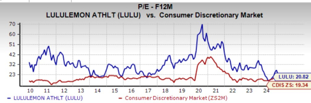 Valuation-wise, the athleisure standout trades at some of its lowest ever levels at 20.8X forward earnings. This marks a 33% discount to its 15-year median and almost in line with its industry. The company also has a sturdy balance sheet with more cash and equivalents than current liabilities and zero debt.