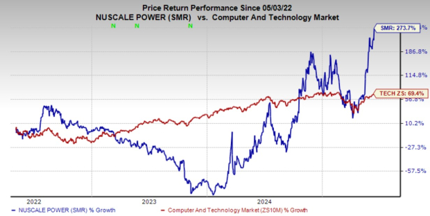 NuScale stock has skyrocketed over 120% in the past month, including a massive one-day surge on Wednesday following the Amazon and Talen nuclear energy deal news. SMR has ripped nearly 300% higher following its May 2022 SPAC IPO. The nuclear energy stock’s recent charge helped it break above its late 2024 and early 2025 highs.