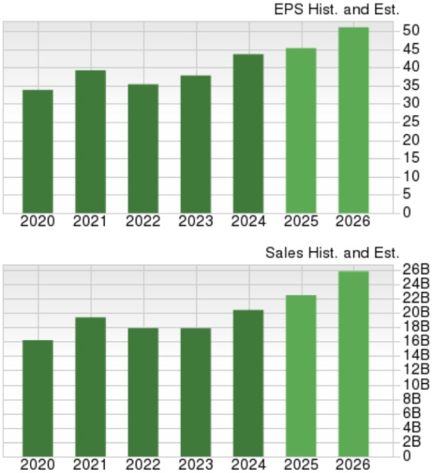 Notably, BlackRock’s Zacks Financial-Investment Management Industry is currently in the top 20% of all Zacks industries. Glamorizing its industry dominance, BlackRock’s annual earnings are slated to rise 5% this year and are projected to increase another 12% in fiscal 2026 to a whopping $51.75 per share. This is accompanied by expectations of 11% sales growth in FY25, with BlackRock’s top line projected to expand another 15% in FY26 to $26.16 billion.