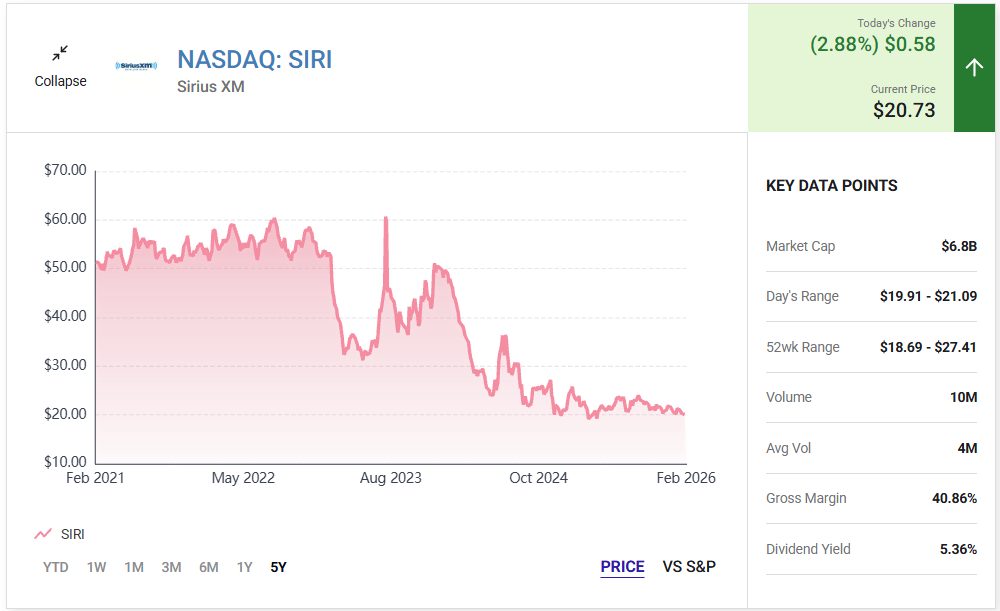 Opportunistic investors can purchase shares of Sirius XM right now for just 6.6 times forward-year earnings, representing a 46% discount to its average forward price-to-earnings (P/E) ratio since 2020.