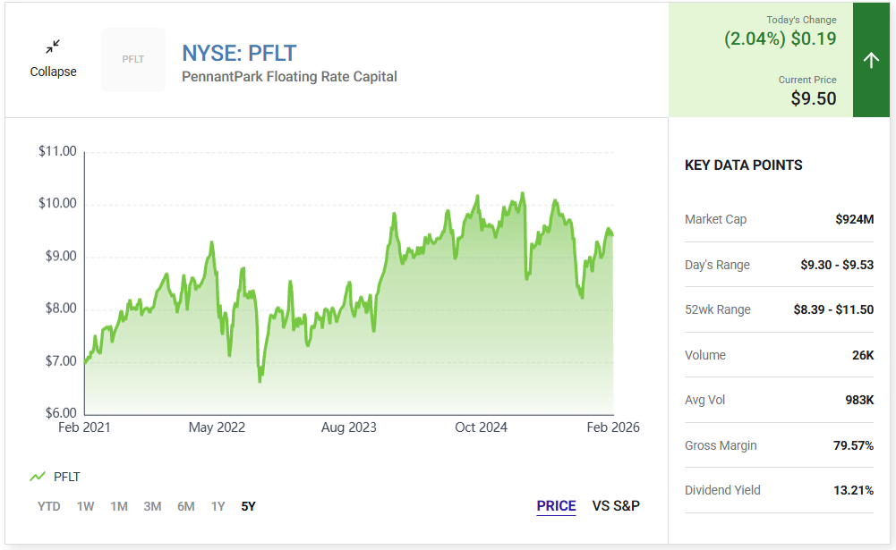 The third ultra-high-yield dividend stock that makes for a screaming bargain in February is an under-the-radar business development company (BDC) that pays its shareholders monthly. Say hello to PennantPark Floating Rate Capital (PFLT) and its 13% (not a typo!) dividend yield.